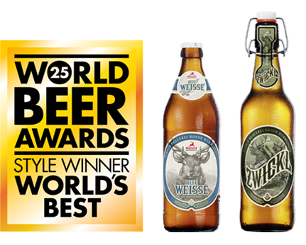 Mais les quatre médailles d'or European Beer Star ne sont pas les seules raisons de faire la fête ces jours-ci à Wurmlingen : selon les « World Beer Awards », la Hirsch Zwickl et la Hirsch Kristall Weisse sont les meilleures bières de leur catégorie au monde !